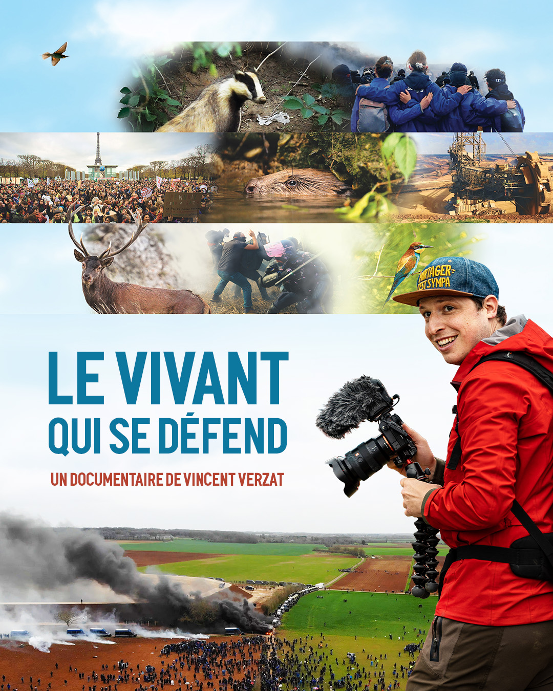 Vincent Verzat filme les mobilisations écologiques depuis 10 ans sur la chaîne YouTube Partager c'est Sympa. Partant d’un récit personnel et sensible, le film Le VIVANT qui se défend retrace son cheminement entre militantisme et naturalisme, sa recherche d’un équilibre entre combat et contemplation, traçant un chemin pour vivre digne et affronter ce qui vient.