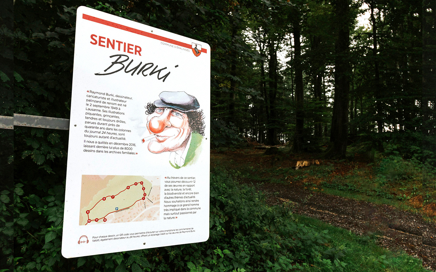 Sur le terrain, pour faciliter encore davantage la déambulation, des autocollants rouges et blancs arborant le jars palinzard (dans une version plus dynamique) ont été apposés sur le mobilier urbain tout au long du tracé. Au seize points d’intérêt, un QR code permet de retrouver directement sur son smartphone les mêmes informations que celles fournies dans la brochure. Bonne balade!